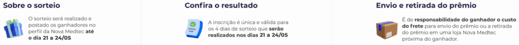 *A Nova Medtec não se responsabiliza pelo transporte, hospedagem ou qualquer custo adicional para a ida do ganhador até o evento. Apenas premiamos com o ingresso.